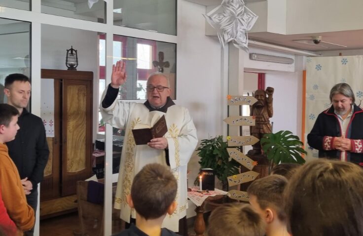 Nakon povratka s božićnog odmora učenika, u četvrtak, 29. siječnja, našu školu pohodio je fra Josip Grubišić. U holu škole dočekali su ga učenici, učitelji i ostali djelatnici naše škole. Fra Josip je potaknuo  učenike da daju sve od sebe u učenju i da će, praćeni Božjim blagoslovom, biti nagrađeni. Potom je uslijedila blagoslovna molitva u kojoj su svi okupljeni molili za sve učenike, njihove obitelji te sve djelatnike škole.