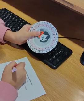 Učenici 4. razreda otkrivali su svijet kriptografije kroz zabavne zadatke šifriranja i dešifriranja poruka. Učili su o važnosti sigurnosti informacija i načinu na koji se tajne poruke mogu zaštititi pomoću jednostavnih šifri i logičkog razmišljanja. Pomoću izrađenih Cezarovih šifri pisali su tajne poruke i dešifrirali ih, a osim nje upoznali su i Morseovu abecedu i PigPen šifru.