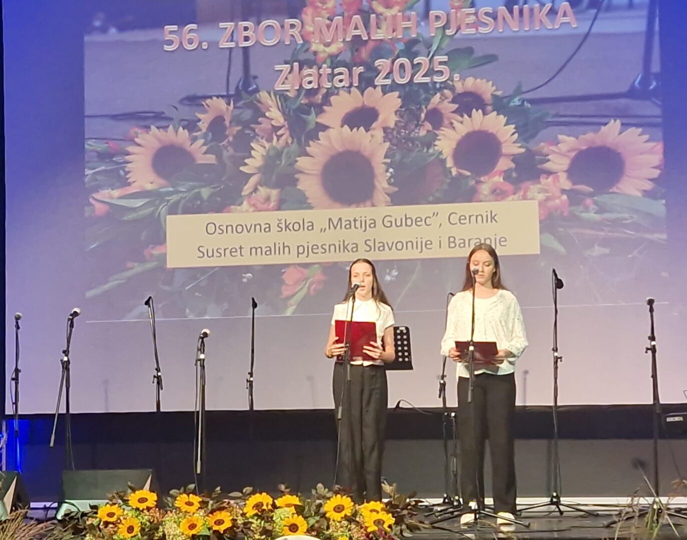 Dana 27. rujna 2025. godine učenice naše škole Larisa Trobić i Magdalena Curić sudjelovale su, u pratnji učiteljice hrvatskoga jezika Tatjane Kovačević, na Danima kajkavske riječi u Zlataru. Manifestacija je to koja njeguje kajkavsku riječ, kulturu i tradiciju, a održava se od 1970. godine u ovom slikovitom gradiću u sjeveroistočnom dijelu Hrvatskog zagorja. Ove je godine ta poučna i zanimljiva manifestacija trajala od 19. do 28. rujna. Naše su učenice gostovale na Zboru malih pjesnika u programu predstavljanja zbirke kajkavskih pjesama te su na kraju programa kroz putopis Matka Peića Nije sva Slavonija ravna lijepo predstavile našu Slavoniju.