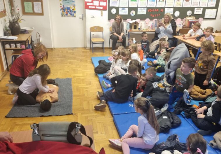 Mališani su s velikim zanimanjem pratili demonstracije pružanja prve pomoći na lutki, probavali masažu srca, postupak koji svakoga od njih može učiniti malim spasiocem.