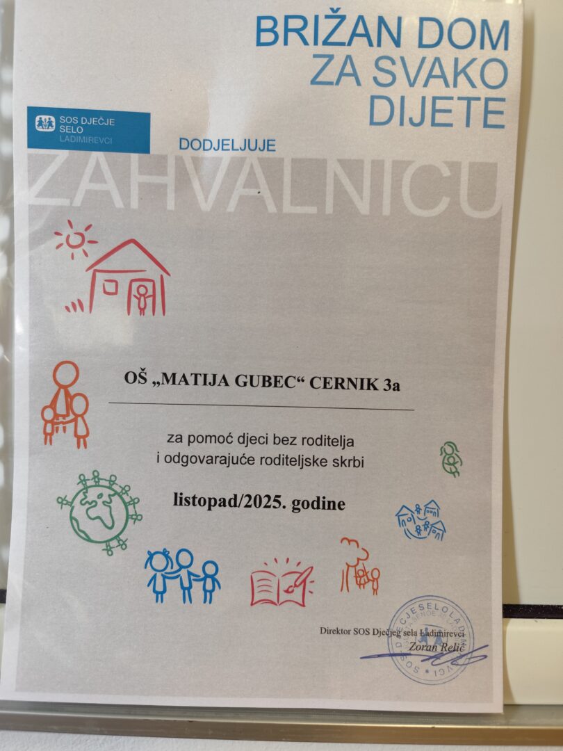 Tamo sam u ime svog  3. a razreda primila zahvalnicu od ravnatelja samog sela pri čemu smo dobili najveći pljesak.